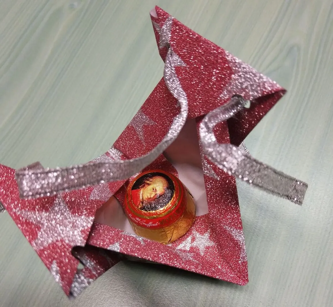 Ebben az édesség mellett egy fenyővers és egy szerkesztett kis köszönőplakát is volt.
