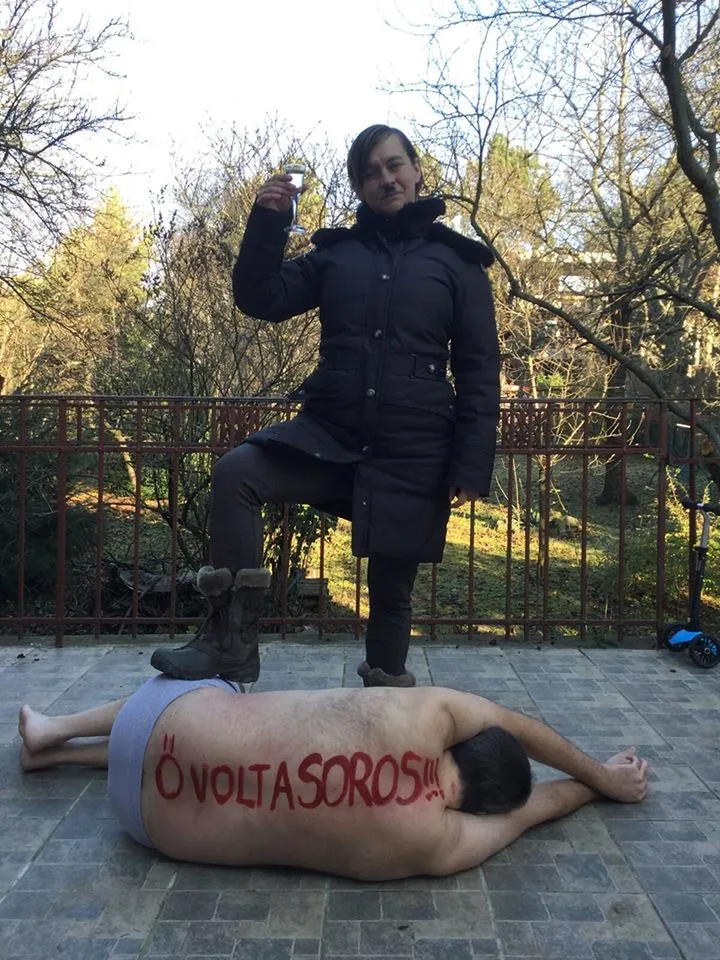 A színésznő a Facebookra feltöltött képen Hitler-bajuszban pózol férjével, Schilling Árpáddal. A rendező hátára az „Ő VOLT A SOROS!!!” feliratot festették. A képet pedig Orbán Viktor egyik Pharaon-ügyben adott válaszával kommentálta. Az egyik LMP-s képviselő érdeklődött a gyanús ügyekbe keveredő szaúdi milliárdos és a miniszterelnök kapcsolatáról, a kormányfő azonban csak annyit válaszolt neki: „Boldog karácsonyt kívánok!”