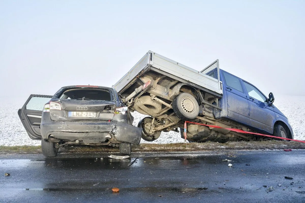 Tömegbaleset történt Fülöpszállásnál. Az 52-es főúton több mint húsz személy- és teherautó csúszott egymásba a sűrű ködben, a jeges úton.