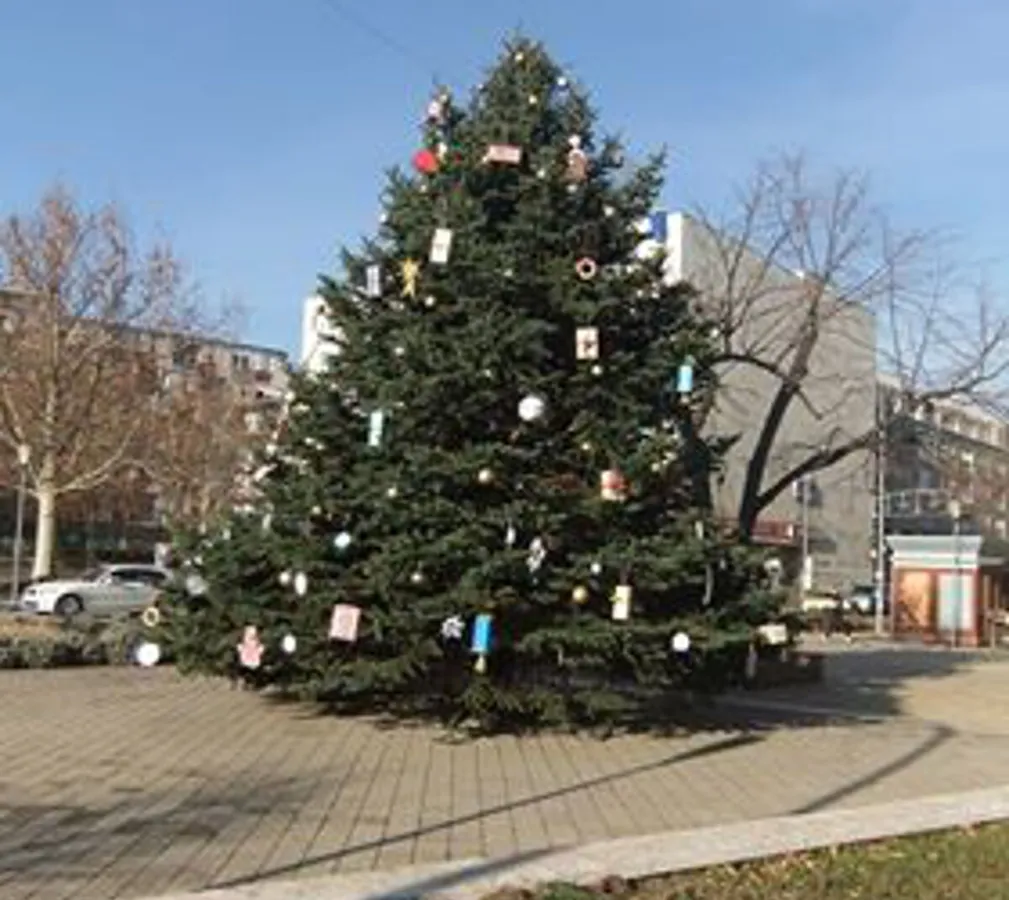 A hatalmas fenyőt szerdán díszítették fel a városrész óvodásai. A lap szerint az egyik önkormányzati képviselő minden csoportnak adott ajándékba egy óriási fenyőfadíszt, a gömböket belülről az adott oviscsoport fényképe díszítette.