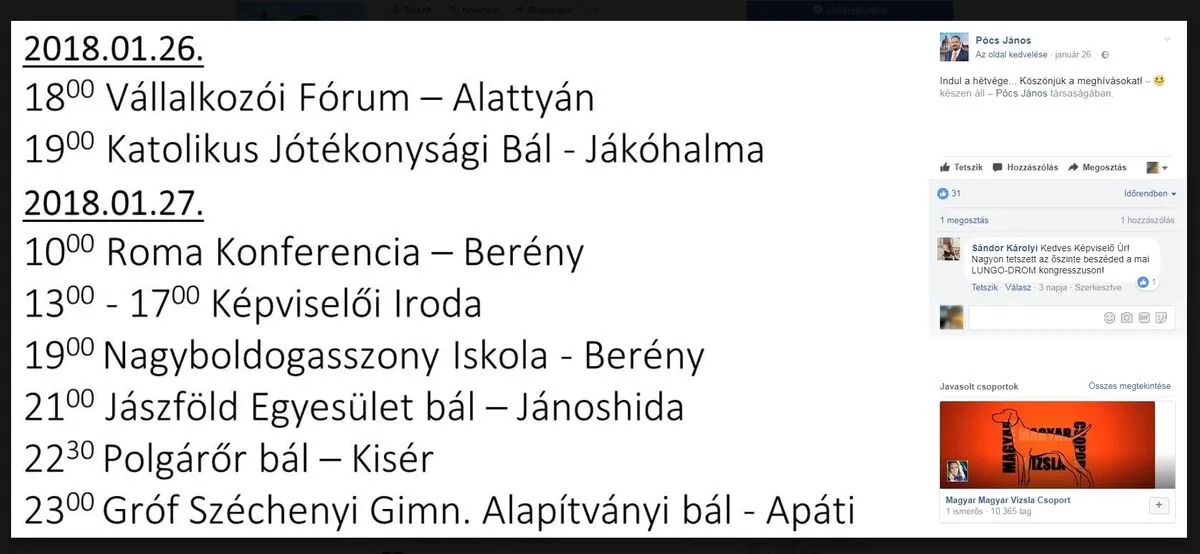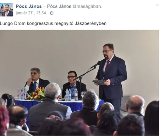 Ezt támasztja alá, hogy a már korábban említett „Roma Konferencia – Berény” már ettől eltérő „Lungo Drom kongresszus megnyitó Jászberényben” címmel szerepel abban a posztban, amelyben Pócs János tette közzé az eseményen készült egyik fotót a kongresszus napján, valamivel 14 óra előtt. A bejegyzést a Fidesz Jászság és Pócs fia megint csak lájkolta.