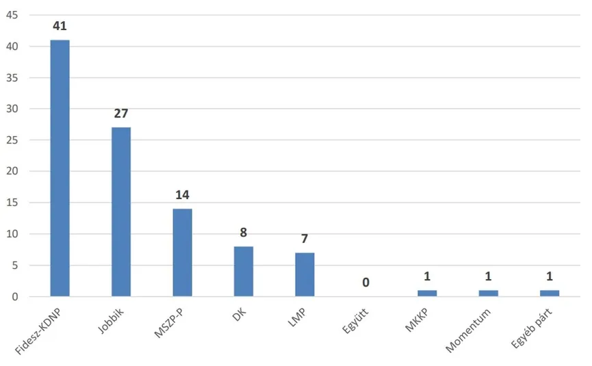 A választókerületben a Fidesz–KDNP a teljes népesség 20 százalékának támogatását tudhatja maga mögött. Helyben is a Jobbik a legerősebb ellenzéki párt, a választókerület jogosultjainak 13 százaléka szavazna rájuk egy jövő vasárnapi országgyűlési választáson. 7 százalékon áll az MSZP, míg a DK-t a teljes népesség 4 százaléka támogatja. Az LMP 3 százalékon áll. A választókerületben elképesztően magas, 30 százalékos a részvételi hajlandóságot mutató, de jelenleg szilárd pártpreferenciával nem bíró választók aránya. A preferenciájukat titkoló szavazók aránya is kiemelkedő, 17 százalék.