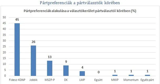 Az MSZP–P és a DK közös jelöltjére, Horváth Jácintra a pártválasztók 19%-a szavazna. Az LMP jelöltje, dr. Károlyi Attila 4, a Momentum jelöltje, dr. Polónyi Tamás 2%-on áll.