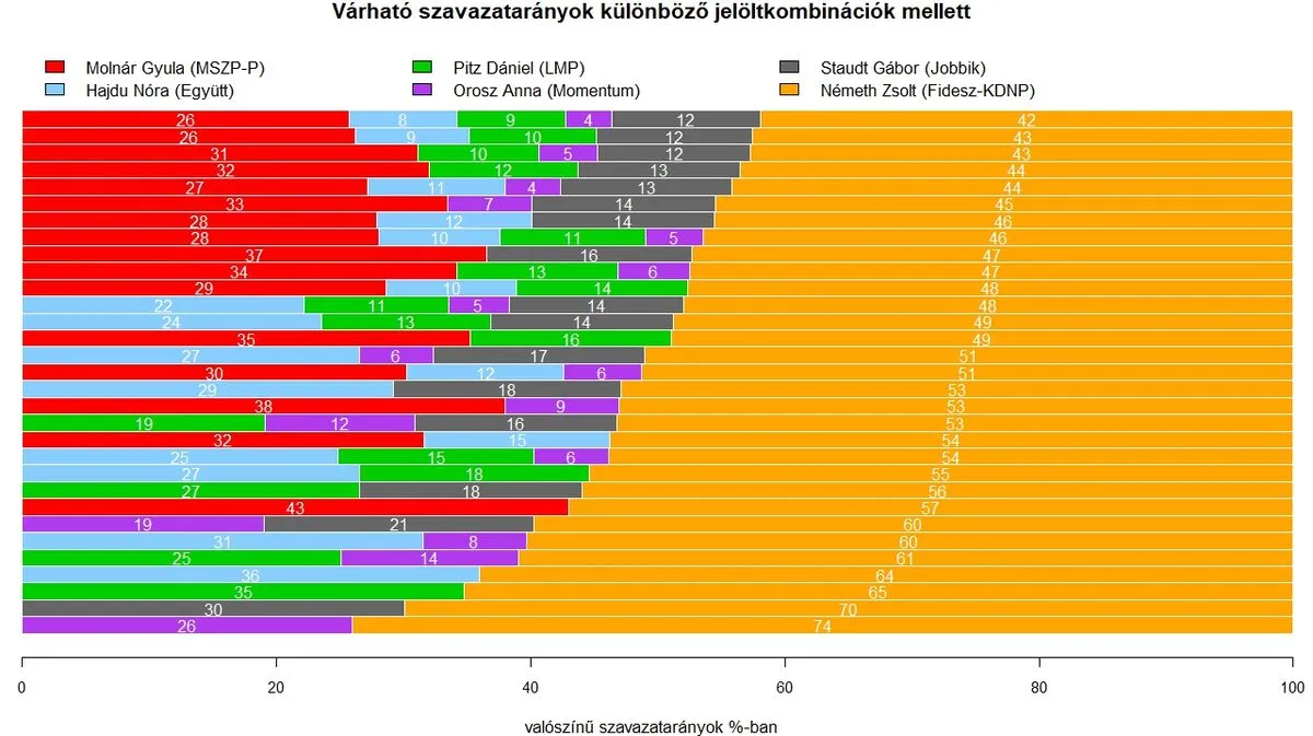 A különböző jelöltkombinációkat vizsgálva a szakértők most kijelentették: Németh Zsolt előnye ledolgozható lenne az ellenzéknek. Ehhez azonban nem csupán az kellene, hogy az LMP és Pitz Dániel, Hajdú Nóra és az Együtt, illetve Orosz Anna és a Momentum is beálljon Molnár Gyula mögé, hanem az is, hogy a három párt választói nagyobb arányban átszavazzanak az MSZP–P jelöltjére, mint ahogy a felmérésben közölték a közvélemény-kutatókkal.