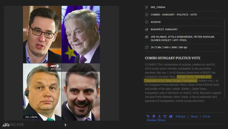 A nemzetközi kép- és hírügynökség fotómontázsára a 2018-as választás miniszterelnök-jelöltjei közé került fel az üzletember fotója. Soros György Orbán Viktorral, Karácsony Gergellyel, és Vona Gáborral szerepel egy képen – írja az Index.