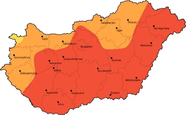 Az intézet interaktív térképet is készített, ami vasárnapig mutatja a helyzetet. A vörös színnel jelölt területeken már másodfokú, az ország többi részén elsőfokú riasztás van érvényben.
