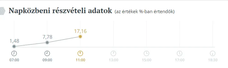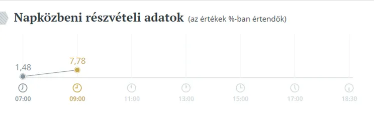 Vasárnap 9 óráig a választásra jogosultak 7,78 százaléka adta le a voksát. 2014-ben 5,25 százalék volt ez a szám, míg 2009-ben 6,03 százalék.