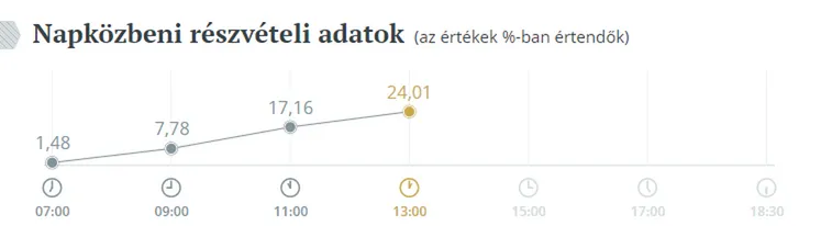 A Nemzeti Választási Iroda adatai szerint 13 óráig összesen 1 890 587 fő adta le a szavazatát. A fővárosban a voksolók 29,06 százaléka, 381 628 választópolgár járult az urnákhoz 13 óráig.