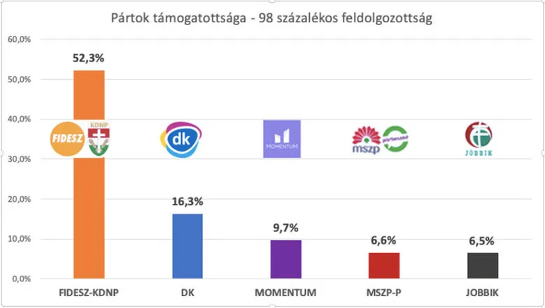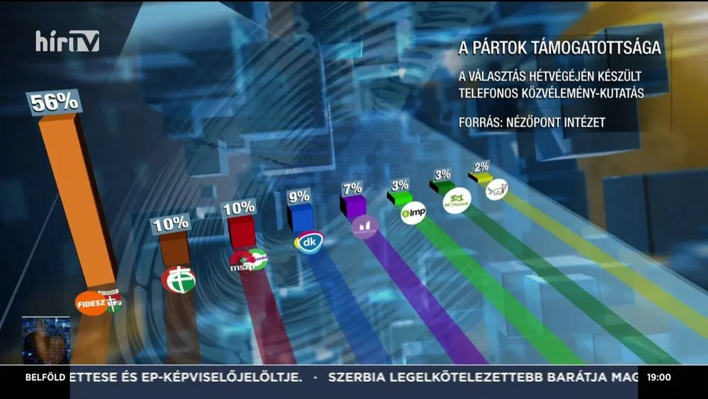A szakértői becslés 55 százalékot predesztinált a Fidesznek. A második helyért nagyon kiélezett volt a küzdelem. A Nézőpont a Jobbikot látja 9 százalékon, vagyis a Jobbik lesz a szimbolikus vesztese a választásoknak.A Jobbik elveszíti azt a titulust, hogy a legerősebb ellenzéki párt. Nagy Dániel közlése szerint helyet cserélt a Momentum és az LMP. Az LMP nem kap mandátumot.