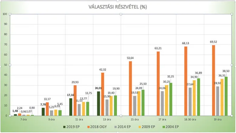 A kétóránkénti NVI-jelentések eddig minden alkalommal rekordot döntöttek, ha a tendencia megmarad, akkor ez lesz a legnagyobb részvételi arányú EP-választás Magyarország történetében.