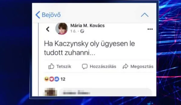 A kilenc évvel korábban légi katasztrófában elhunyt Lech Kaczynski lengyel miniszterelnök halálával vont párhuzamot Kovács M. Mária a Facebook felületén annak apropóján, hogy Orbán Viktor Washingtonba utazott. A néhai lengyel miniszterelnök halálát nagy nyilvánosság előtt gyűlöletkeltésre felhasználó történészprofesszor bátorsága azonban nem tartott sokáig, posztját ugyanis valamilyen oknál fogva kitörölte, ám az internet nem felejt.