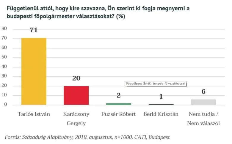 A közelgő önkormányzati választások kapcsán a Századvég megvizsgálta, hogy a budapestiek hogyan vélekednek Tarlós Istvánról és az ellenzéki főpolgármester-aspiránsokról. A kutatás kitért arra is, hogy a választók hogyan látják az egyes jelöltek esélyeit az októberi választáson, valamint hogyan értékelik Tarlós István és Karácsony Gergely politikai kvalitásait.