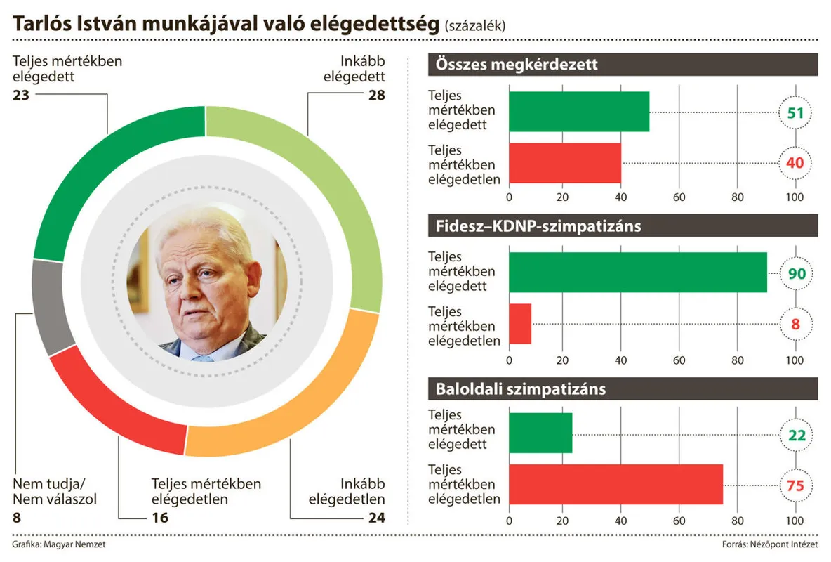 Egyéb mutatók is azt igazolják: nincs főpolgármester-váltó hangulat. Jelentősen hozzájárul Tarlós István vezetéséhez, hogy a budapestiek többsége (51 százalék) elégedett a főpolgármester eddigi munkájával. A fideszesek teljes mellszélességgel a Budapestet kilenc éve vezető politikus mellett állnak (90 százalékuk elégedett), de a baloldali ellenzékiek majdnem negyede (22 százalék) is elégedett Tarlós István munkájával. A magas elégedettségi mutató is arra utal: nincs főpolgármester-váltó hangulat Budapesten. Mindez megnehezíti Karácsony Gergely kormányellenességre építő kampányát.