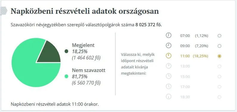 - Részvételi arány - 11 óra - főváros - 17,48 százalék