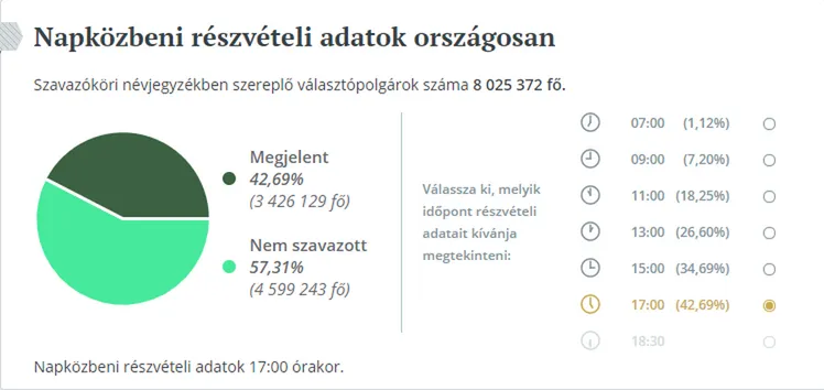 A fővárosban a szavazók 44,07 százaléka, 602 899 választópolgár adta le szavazatát 17 óráig.