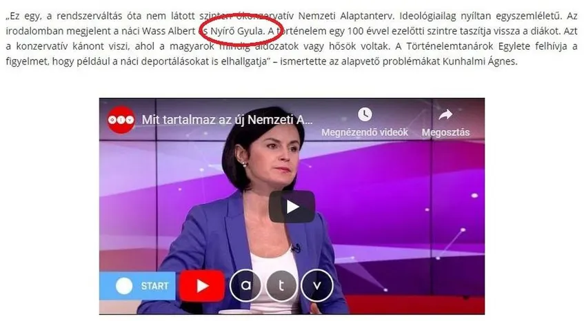 Lenácizta Nyírő Gyulát, a szocialisták által bezárt Lipótmezei Elmegyógyintézet egykori főorvosát Kunhalmi Ágnes. Az MSZP oktatási szakpolitikusa a nemzeti alaptanterv kapcsán próbálta lenácizni Nyírő József írót, azonban a keresztnevet nem sikerült eltalálnia. A szocialista párt közleményében is Nyírő Gyula szerepelt, azonban a honlapjukon később korrigálták a hibát.