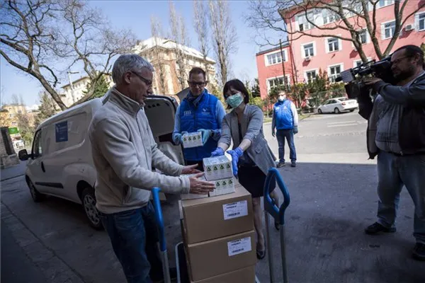 Soltész Miklós, a Miniszterelnökség egyházi és nemzetiségi kapcsolatokért felelős államtitkára, a Nemzeti Humanitárius Koordinációs Tanács elnöke, Gáncs Kristóf, az Ökumenikus Segélyszervezet kommunikációs vezetője és Majorné Stelbaczky Zsuzsanna főgyógyszerész az egészségügyben dolgozóknak felajánlott Béres-cseppek dobozait pakolták ki a Szent László Kórház udvarán. A Béres Gyógyszergyár Zrt. tízezer üvegnyi Béres Cseppet ajánlott fel a Nemzeti Humanitárius Koordinációs Tanácsnak, amely hat karitatív tagszervezeten keresztül juttatja el azokat az egészségügyben dolgozóknak és az idősotthonok lakóinak.