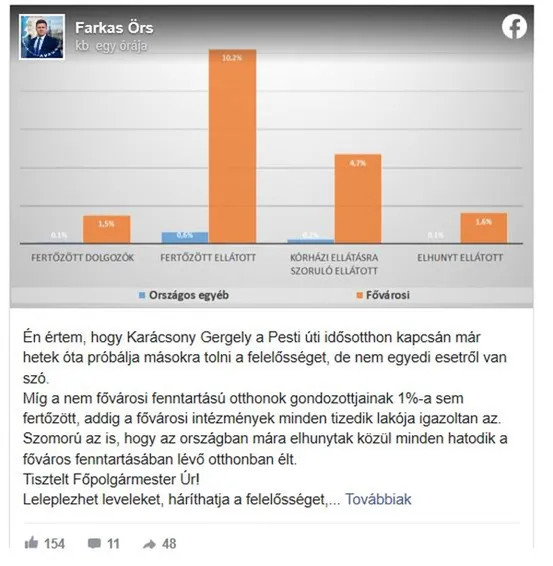 "Én értem, hogy Karácsony Gergely a Pesti úti idősotthon kapcsán már hetek óta próbálja másokra tolni a felelősséget, de nem egyedi esetről van szó" - kezdi bejegyzését Farkas Örs, majd így folytatja:
