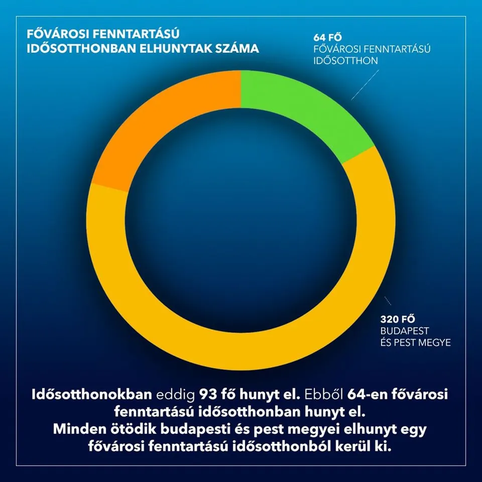 Az államtitkár megosztott egy diagrammot is a fővárosi fenntartású idősotthonban elhunyt emberek számát bemutatva. Az információ szerint idősotthonokban eddig 93 koronavírus-fertőzött halt meg, közülük 64-en fővárosi idősotthonban. Mivel Budapesten és Pest megyében eddig 320 koronavírus-fertőzött halt meg, így "minden ötödik budapesti és Pest megyei elhunyt egy fővárosi fenntartású idősotthonból kerül ki" - írta Kovács Zoltán.