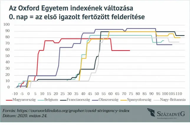 A többhetes vagy hónapos késlekedés ára az volt, hogy a vírus elszabadult, az egészségügyi rendszer túlterhelődött, a halottak száma megugrott. Így végül Olaszországban, Spanyolországban és Franciaországban a magyarországinál is keményebb korlátozásokat kellett bevezetni. Ráadásul nemcsak drasztikusabbak voltak a korlátozások, hanem hosszabb ideig is kellett fenntartani a szigorú intézkedéseket: Magyarországon 48 nap után enyhítéseket lehetett bejelenteni a járványügyi mutatók kedvező alakulása miatt, Spanyolországban, Franciaországban viszont már több mint két hónapja a 70-es érték fölött tartózkodik a mutató.