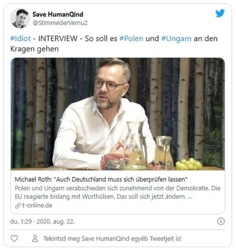 Az EMIH vezetője ezzel Michael Roth német szociáldemokrata politikus, uniós ügyekért felelős miniszter kijelentésére reagált, aki antiszemitizmussal vádolta meg Magyarországot.