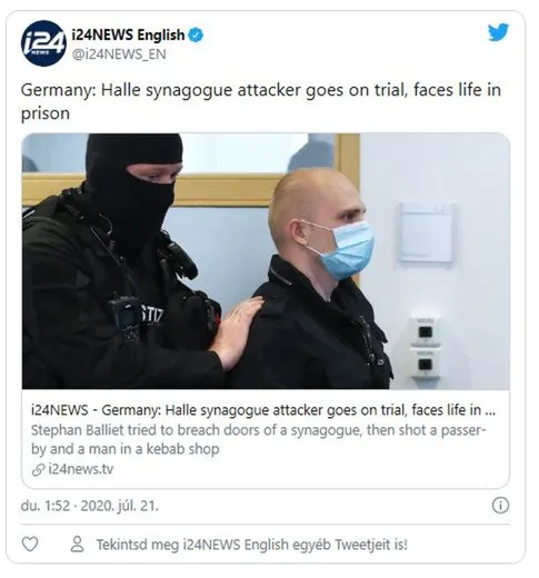 A 28 éves neonáci férfi pere július 21-én kezdődött a magdeburgi tartományi bíróságon. Balliet-t 13-rendbeli bűncselekménnyel, köztük emberöléssel, emberölési kísérlettel, valamint súlyos testi sértéssel vádolják, és a német törvények szerint akár életfogytiglani börtönre is ítélhetik.