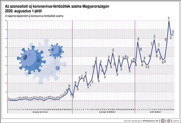 1478 újabb magyar állampolgárnál mutatták ki az új koronavírus-fertőzést (COVID-19), ezzel 47 768 főre nőtt a hazánkban beazonosított fertőzöttek száma. Elhunyt 31 többségében idős, krónikus beteg, így az elhunytak száma 1173 főre emelkedett, 14 312-en pedig már meggyógyultak. Az aktív fertőzöttek száma 32 283 fő. Az aktív fertőzöttek 31%-a, az elhunytak 40%-a, a gyógyultak 30%-a budapesti. 1896 koronavírusos beteget ápolnak kórházban, közülük 188-an vannak lélegeztetőgépen.