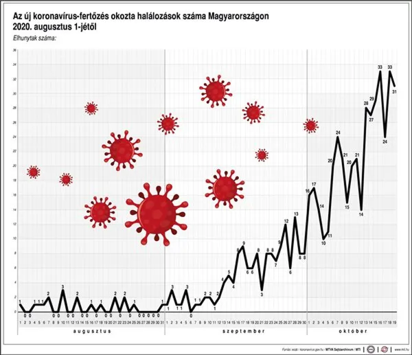 Az új koronavírus-fertőzés okozta halálozások száma Magyarországon 2020. augusztus 1-jétől: