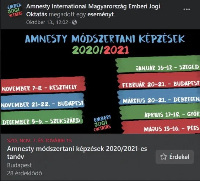 Az Amnesty további a fiatalságot érzékenyítő képzéseket fog tartani többek közt Szekszárd, Győr, Szeged és Debrecen is... A Soros-hálózat módszertani képzése csak úgy dübörög!