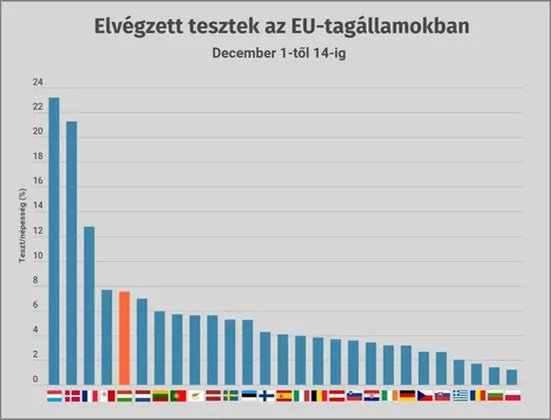 A Farkas Örs által közzétett táblázatból jól látszik, hogy csak négy országban végeztek lakosságarányosan több tesztet az elmúlt két héten, mint hazánkban. A magyar mellett komoly nagyobb országok közül a franciáknak, dánoknak és a hollandoknak sikerült hasonlóan jó, vagy jobb eredményt elérniük.