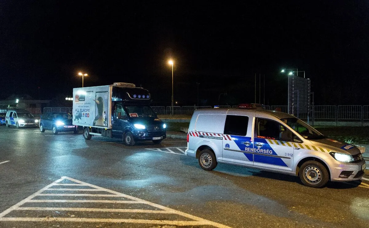 A mínusz 70 fokos hűtést igénylő, Pfizer-BioNTech gyártmányú vakcinákat nyomkövetővel és hőérzékelővel ellátott dobozokban, rendőri biztosítással szállítják a Dél-Pesti Centrumkórházba.