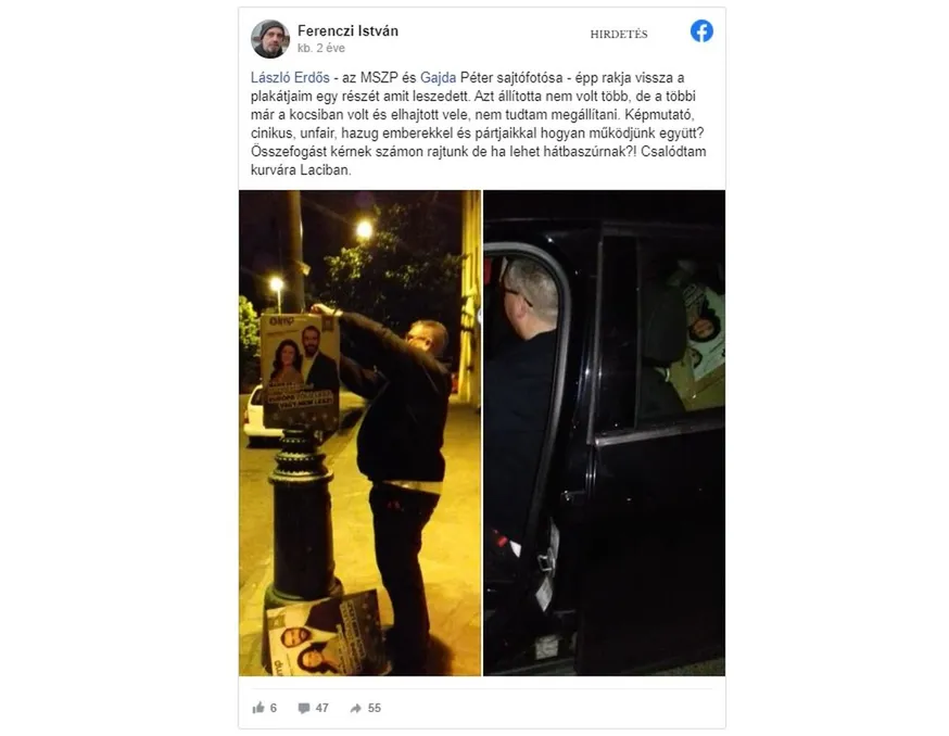Erdős László, Gajda Péter kispesti polgármester és az MSZP sajtófotósa 2019. május 24-én tett szert, kétes, országos hírnévre, ugyanis Ferenczi István LMP-s politikus éppen rajtakapta, amint az utcán leszedi, rongálja a zöld párt plakátjait.