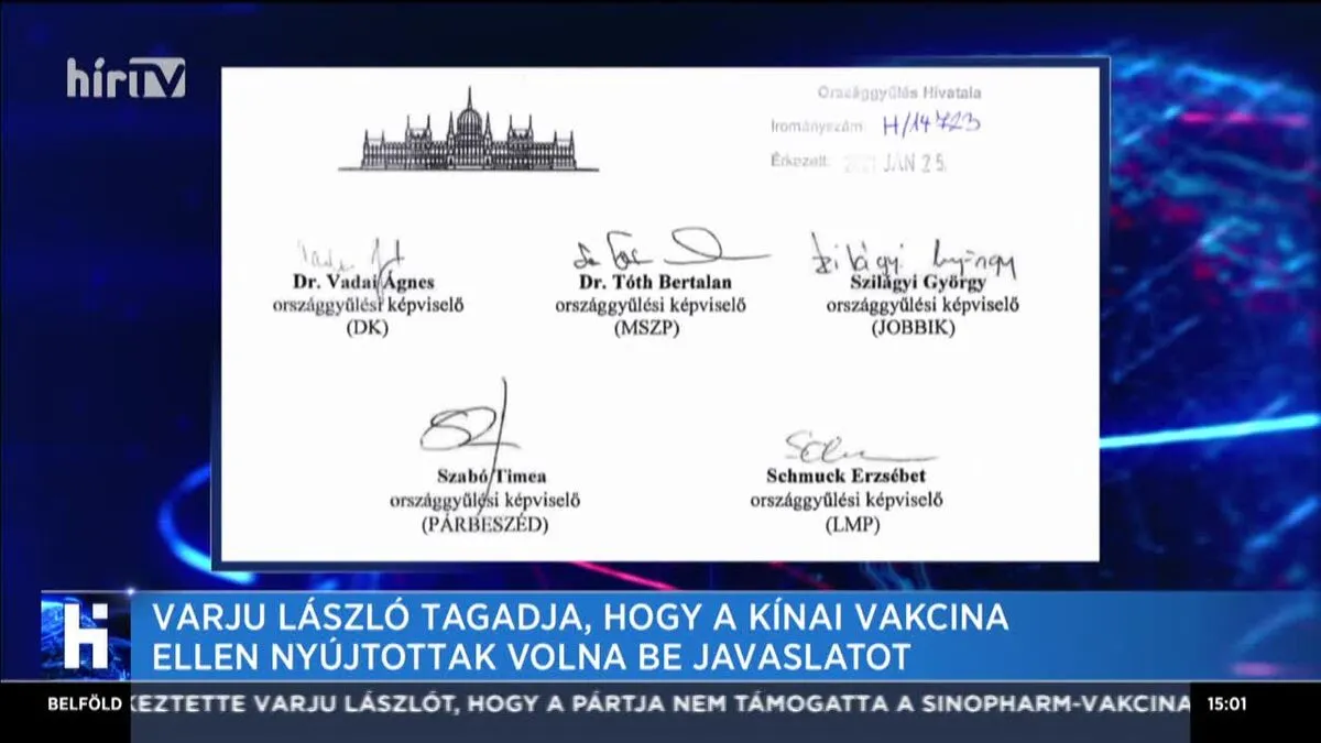 Híradónk stábja azonban emlékeztette a politikust, hogy a pártja nem támogatta a Sinopharm vakcina használatát, sőt egy javaslatot is benyújtott a betiltása érdekében. Erre Varju azt mondta: ez tévedés.