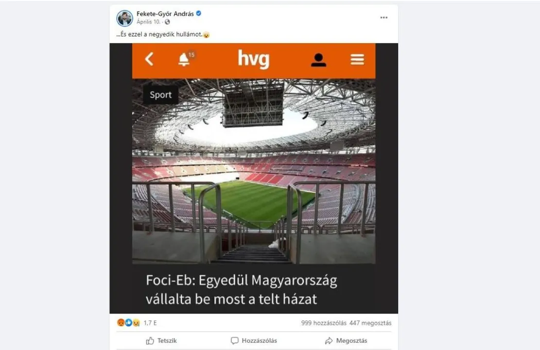 Nem árt felidézni: a keddi meccsen részt vevő Fekete-Győr is rettegett a vírus negyedik hullámától, Facebook-posztban kritizálta a kormány döntését: