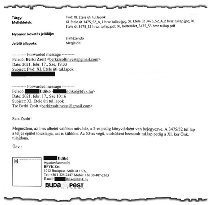 A Berki testvérek egyébként – több e-mail tanúsága szerint – napjainkban is szorosan összehangolják a teendőiket, és több elektronikus levél bizonyítja, hogy a Barts Balázs vezette fővárosi vagyonkezelő egyik munkatársától, F. Ildikó ingatlanhasznosítótól közvetlenül kapják a szenzitív belső információkat.