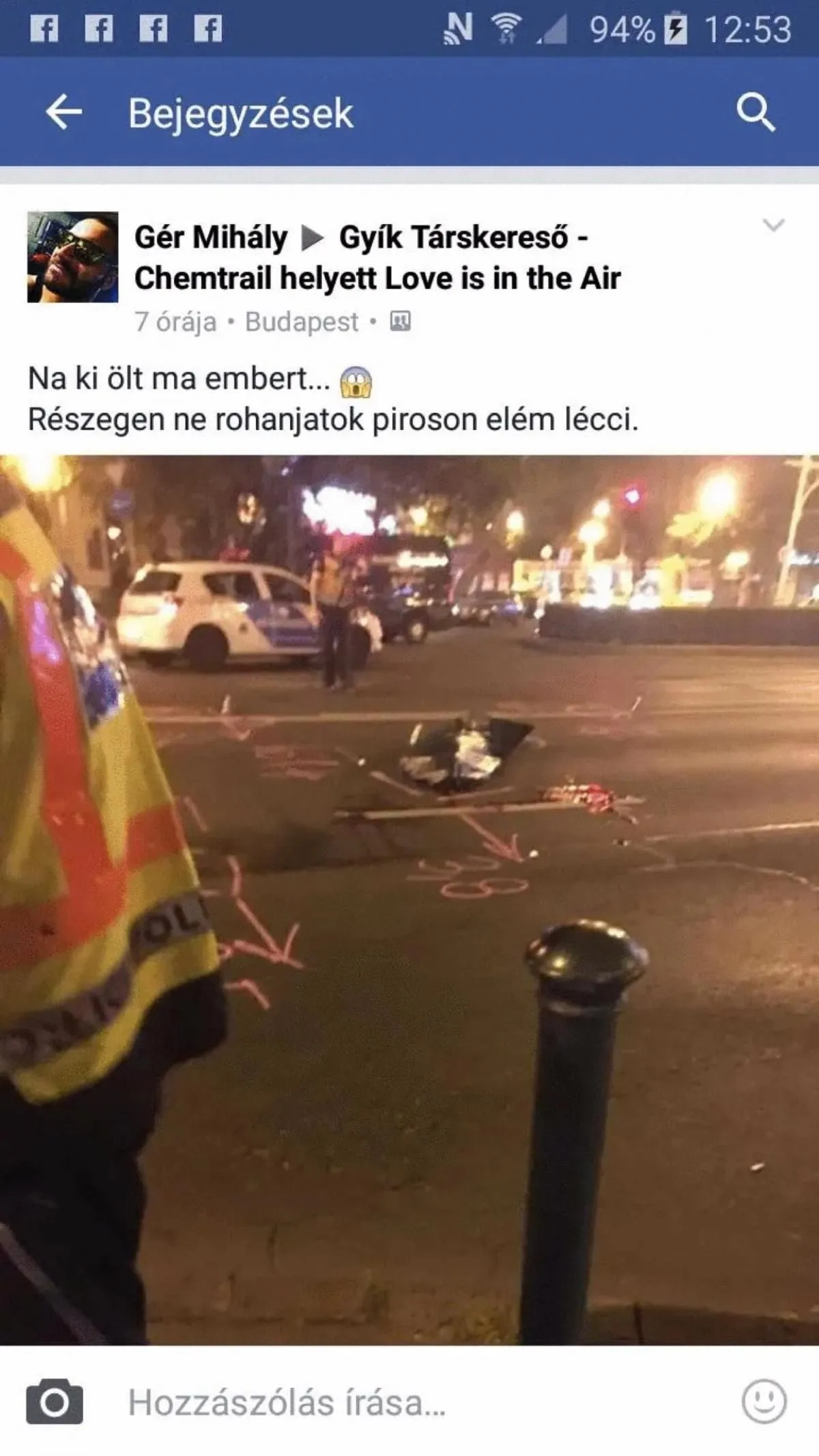 Gér, a Párbeszéd jelöltje, Karácsony embere az alábbi posztban jelentette be annak idején, hogy embert ölt a zebrán: