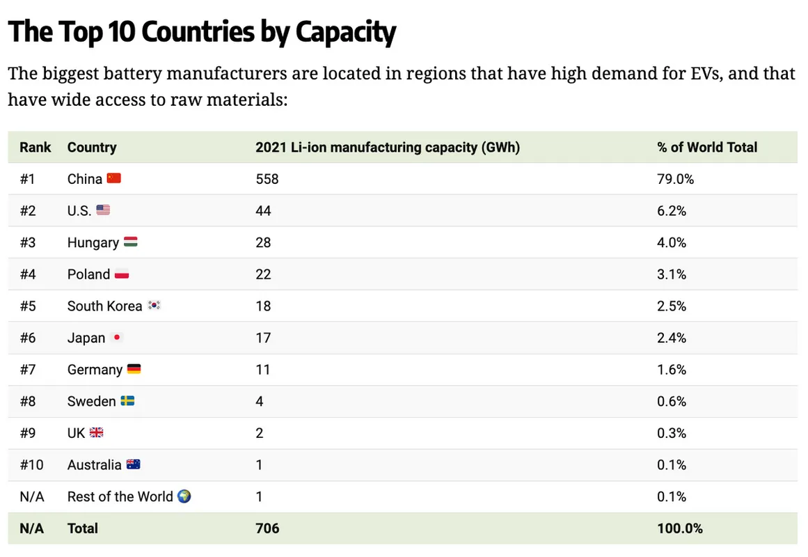 Nézzük a 10 legnagyobb részesedéssel bíró nemzetet az elektromos járművek akkumulátorgyártási piacán: