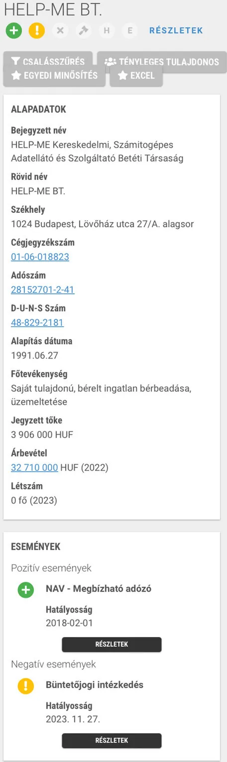 A Help-Me Bt.-ben, amely az elmúlt években összesen több mint százmilliós bevételt realizált, kültagként tulajdonos a konkrét büntetőjogi intézkedés alá vont Vig Mór és úgyszintén kültagként tulajdonos Vig Dávid is.