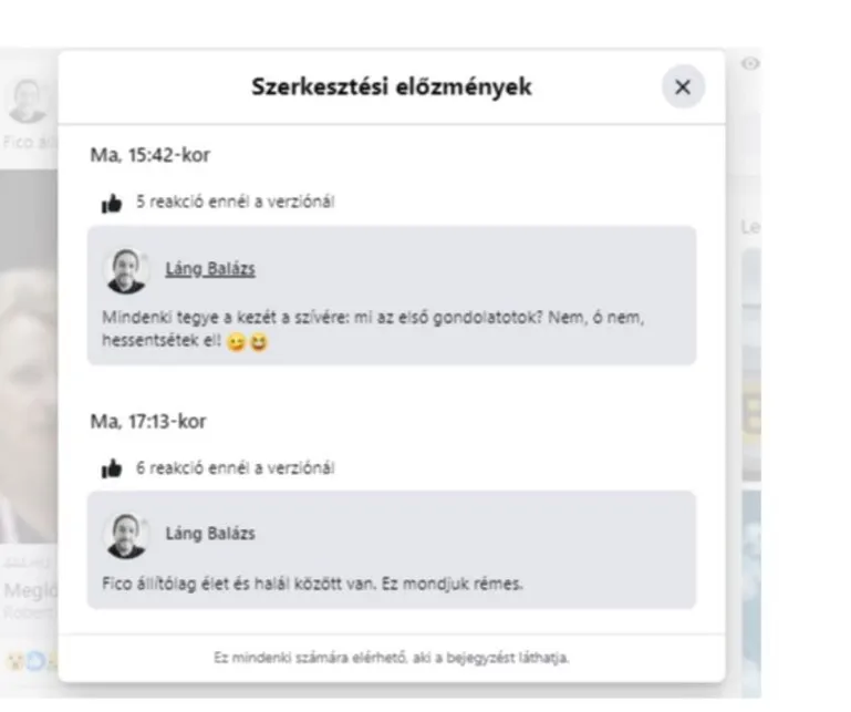 Láng Balázs: Mindenki tegye a kezét a szívére: mi az első gondolatotok? Nem, ó nem, hessentsétek el! – (Ő később átírta bejegyzést: Fico állítólag élet és halál között van. Ez mondjuk rémes.)