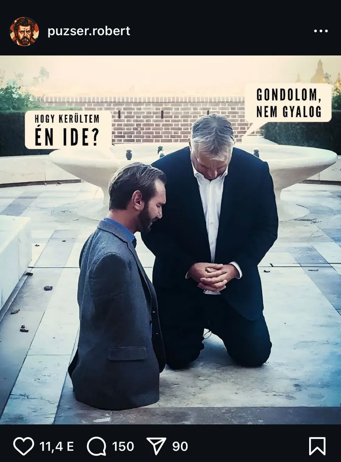 Innentől kezdve elárasztották a netet a legkülönfélébb mémek, amelyekben ez a mondat szerepelt valamilyen formában. Ezzel nem is lenne semmi baj, hiszen ez már számos esetben megtörtént, van ilyen, hogy internetes közkinccsé válik egy-egy jól sikerült mondat. Azonban erre a hullámra felülve Puzsér a saját Instagram-oldalára feltöltött egy olyan mémet, amin Orbán Viktor miniszterelnök és Nick Vujicic ismert nemzetközi hírű prédikátor, szónok, motivációs tréner együtt imádkozik.