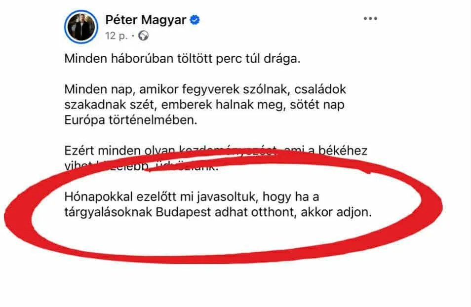 A jelenet szinte filmszerű. Magyar Péter, az új politikai messiás, mélyen a kamerába néz, és a béke fontosságáról beszél, majd előáll a "saját" javaslatával: "Hónapokkal ezelőtt mi javasoltuk, hogy ha a tárgyalásoknak Budapest adhat otthont, akkor adjon." A probléma mindössze annyi, hogy a javaslat nem "hónapokkal", hanem évekkel ezelőtt hangzott el, és nem tőle, hanem Szijjártó Péter külügyminisztertől, a háború kitörésének másnapján, 2022. február 25-én. Ez a fajta pofátlan ötletlopás és a történelem átírására tett kísérlet már nem egyszerű politikai hiba, hanem egyenesen az olvasók intelligenciájának a semmibevétele.