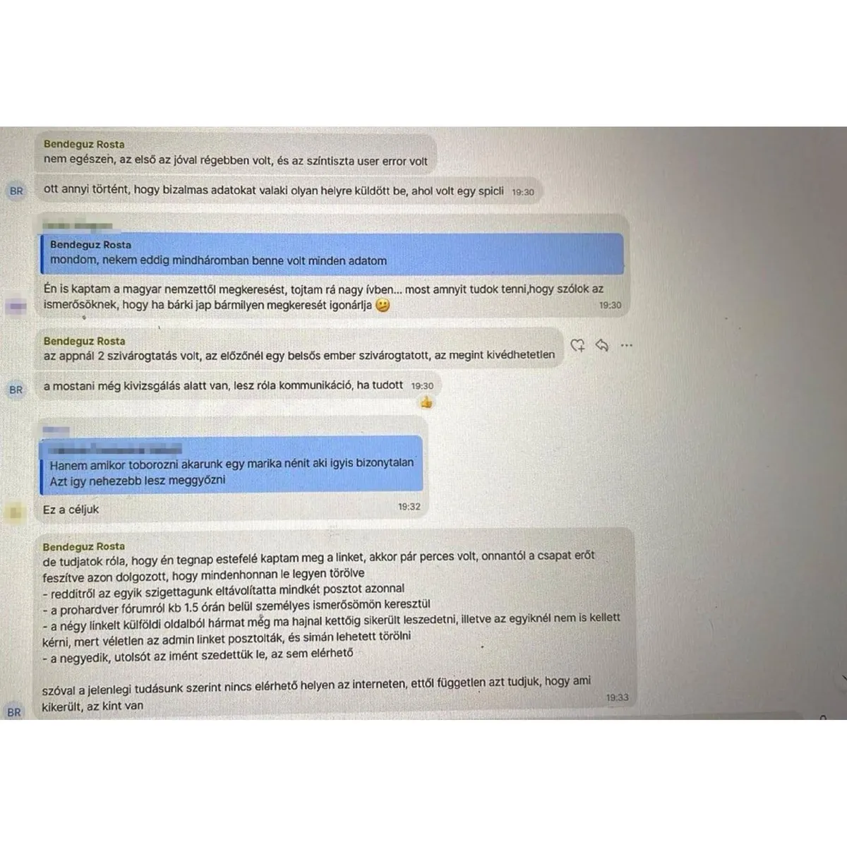 Rosta Bendegúz, a párt egyik vezető informatikusa ugyanekkor arról tájékoztatta a tagokat, hogy még vizsgálják, mi történt, és fogalmuk sincs, hogy belső szivárogtatás vagy külső támadás okozta-e a katasztrófát.