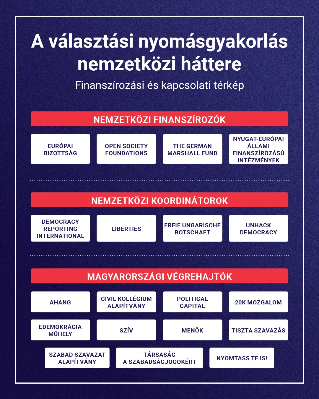 Nézzük a tényeket a csatolt ábra alapján: a piramis csúcsán ott az Európai Bizottság és a Soros-féle Open Society, középen a berlini és brüsszeli "koordinátorok", az alján pedig a magyarországi "végrehajtók" (aHang, TASZ, Political Capital). Ez egy katonai precizitással felépített hadsereg. Lánczi rámutat: nem azért perelik az X-et Berlinben, mert érdekli őket az igazság, hanem hogy "bizonyítékot" gyártsanak a csalásra. Ez az önbeteljesítő jóslat iskolapéldája. Először megmondják, hogy a választás nem lesz tiszta, aztán tesznek róla, hogy botrány legyen, végül kiviszik az embereket az utcára "demokráciát védeni". Valójában ők azok, akik a demokráciát túszul ejtik. Ha Fidesz nyer, jön a ribillió – ez a terv. De most, hogy tudjuk a forgatókönyvet, már nem fog akkorát ütni a csattanó.