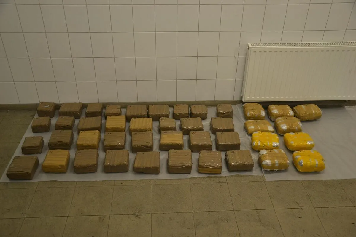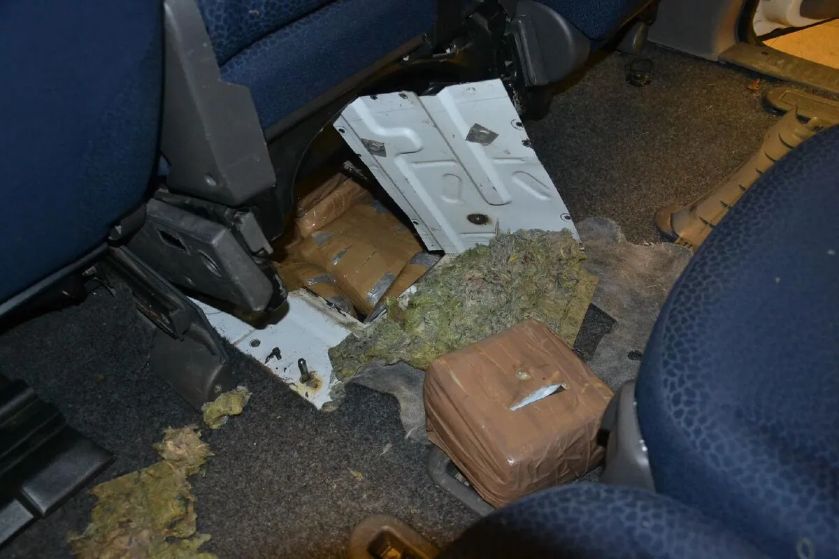 A jármű ellenőrzésekor a fenéklemezen a pénzügyőrök átalakításra utaló nyomokat találtak. A kialakított rejtekhelyről több csomagban 112 kilogramm gyantaszerű anyag, valamint 9451 gramm növényi törmelék került elő. Az elsődleges vegyészszakértői vélemény szerint a megtalált anyag hasis, illetve marihuána. A rendőrök lefoglalták a kábítószert, melynek feketepiaci értéke körülbelül 355 millió forint.
