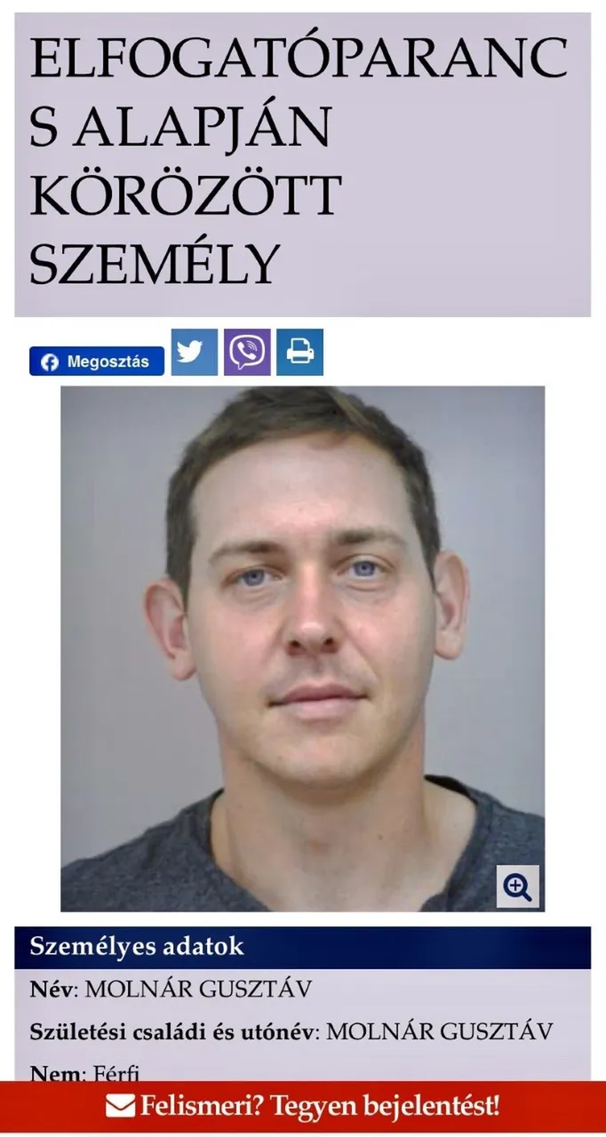 A Blikk úgy tudja, Gusztávot azért keresik a zsaruk, mert többszöri felszólítás ellenére sem jelent meg a Pest megyei település bíróságán, ahol gyermeke édesanyjának jelenlegi párjával van vitás ügye.