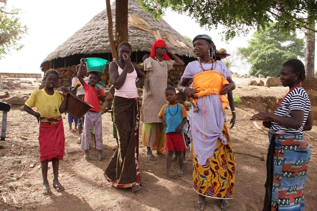 A közösséget négy család alkotja, szigorúan leosztott és öröklődő feladatokkal. A Keitas família irányítja hagyományosan a falut, a családfő az elöljáró. A Camaras és a Saouras család működteti a falut, intézi a napi ügyeket, míg a Sadiakus felelős a hagyományok őrzéséért, az ünnepekért. A messziről jött látogatónak elsőre persze fogalma sincs, ki kicsoda, azt azonban egyértelműen érzékeljük, hogy a nők az aktívabbak. Ládát, kancsót, zsákot a fején cipelő, deszkaegyenes hátú asszonyt sokat láttunk már, itt viszont feltűnik olyan is, aki nagy olajoshordót cipel a kobakján, alig fér el vele a házikók között. A falu túlsó felén három nő az ebédnek való zöldséget készíti elő, maniókát vagy valami hasonlót zúz össze. A többiek pedig portékáikat mutogatják; ha az európai látogatók megjelenése anyagiassá is tette őket, dísztárgyaik legalább autentikusak, ezeket az agyaggolyókból fűzött láncokat, faragványokat biztosan nem Kínából hozzák.