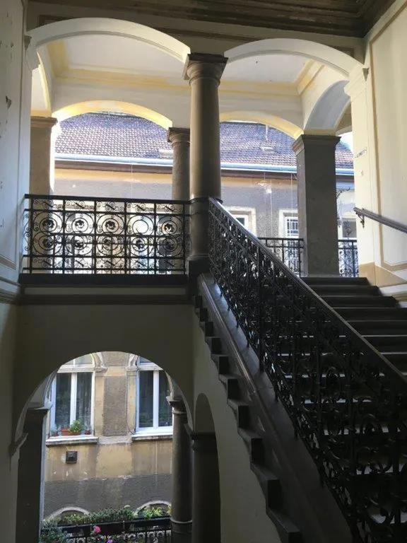 Az épület, amelyben a lakás található, közepes állapotban van, ráférne egy festés, kisebb felújítás. Egyébiránt mutatós, lépcsőházában még eredeti metszett üveg is megmaradt, a freskók is látszanak valamennyire, kovácsolt vas korlátjai gyönyörűek. Lift nincs benne, így a legfelső, harmadik emeleten lévő ingatlanba gyalog kell felmenni, de lépcsői kényelmesek, a le-föl mászkálás idősebbeknek sem jelenthet problémát. A környéken parkolni nem nagyon lehet, elég sok kört kell megtennie annak, aki napi szinten autóval jár ide haza. Van a közelben egy-két parkolóház, de azokban helyet szerezni szinte lehetetlen.