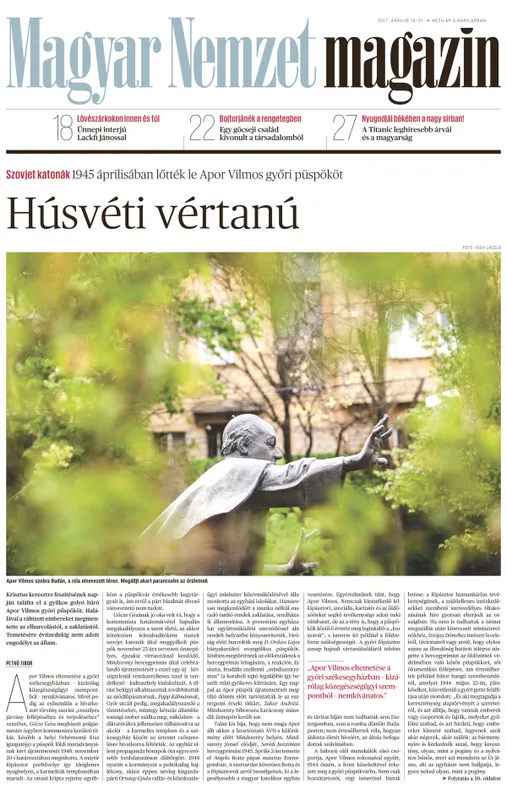 Szovjet katonák 1945 áprilisában lőtték le Apor Vilmos győri püspököt (17., 20. oldal)