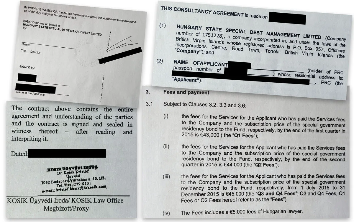 A birtokunkba került szerződést egy kínai állampolgár kötötte egy letelepedési kötvényeket forgalmazó offshore céggel.
