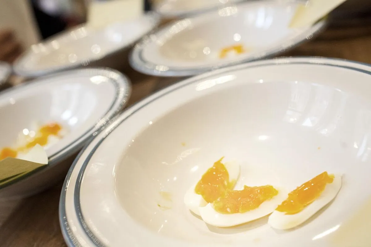 – Eddig ez volt a legsápadtabb, de ennek van a legjobb íze – summázzák a szakemberek tapasztalataikat. A dobogó második helyére kerül a Molnár B. Tamás által hozott, Somogy megyéből való őstermelői tojás (50 Ft/db), amely a tiszta kukorica színét adja vissza. A fehérje tökéletes konzisztenciájú, a sárgája krémes.